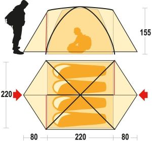 - Dış tente: yırtılmaz polyester 70D, 85gr/m² , poliüretan kaplama, 3000mm'ye kadar su geçirmez , su itici özellikte,ısı yalıtımlı kumaş